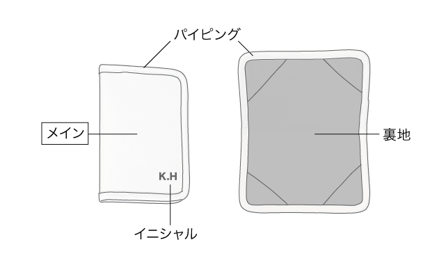 メインカラー12色、パイピング12色、裏地4色の中からお好きな色をチョイス。豊富な色の組み合わせであなたのアイテムをドレスアップします。